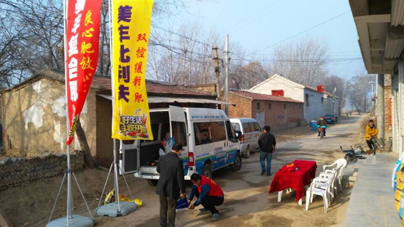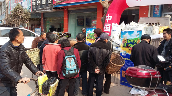 热闹的宣传促销现场,当地老百姓纷纷咨询:活动内容、化肥价格、化肥如何合理的施用等问题;现场活动气氛带动了老百姓的购肥的积极性,有老百姓一次性购买美丰硝铵磷10袋。