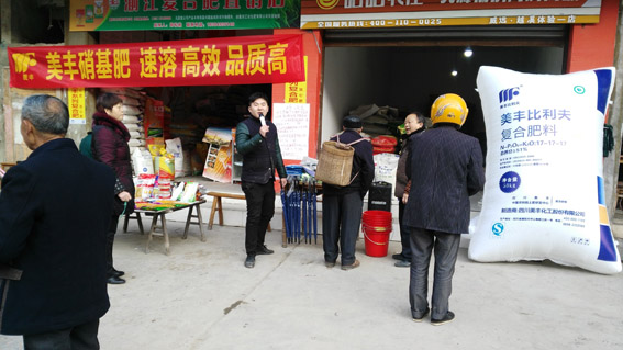本网讯 近期,美丰公司协同自贡配送基地自贡金玉农资公司在威远县重要乡镇组织并开展关于美丰复合肥产品一系列的营销活动,大力消化基层零售网点的库存,为接下来的入库做好前期准备。